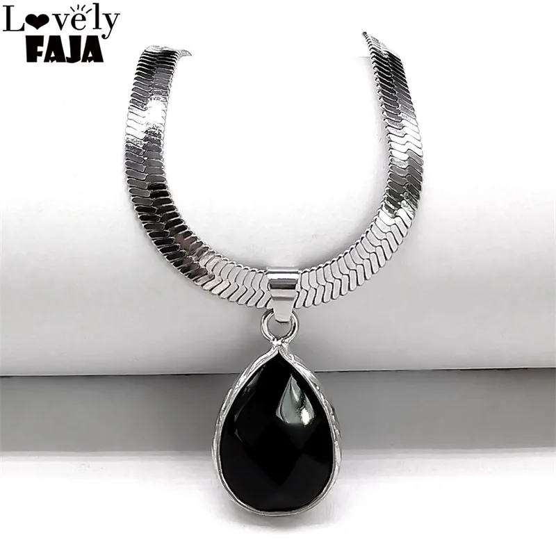 Collier gothique en obsidienne noire pour femmes, bijou en acier in...