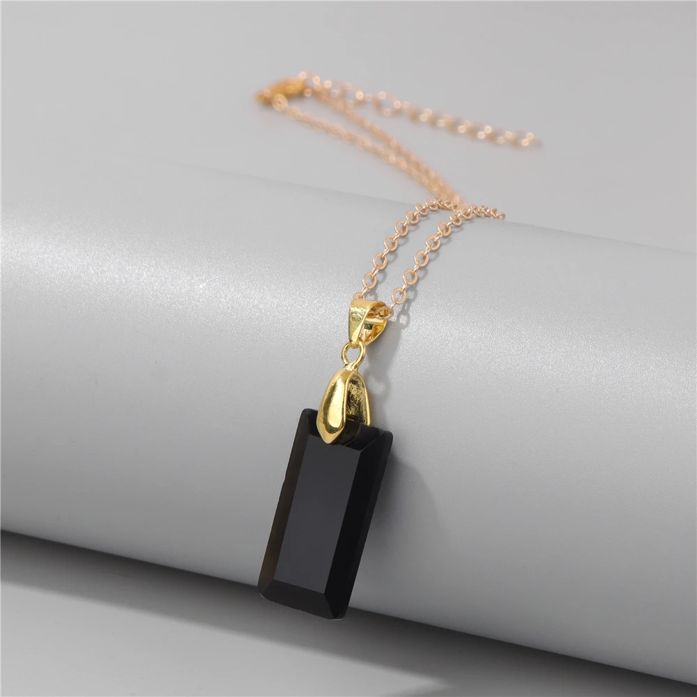 Collier pendentif en pierre précieuse hexagonale d'obsidienne noire, collier en cristal, Reik...