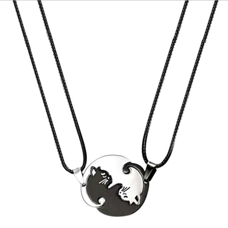 Yin Yang chat Puzzle Couple collier noir blanc mignon chat colliers en acier inoxydable collier pour...