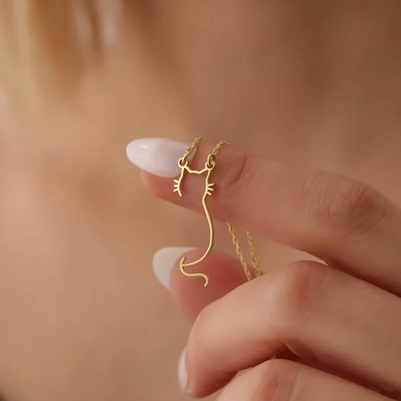 Collier pendentif chat chat chat creux mignon pour femmes et filles...