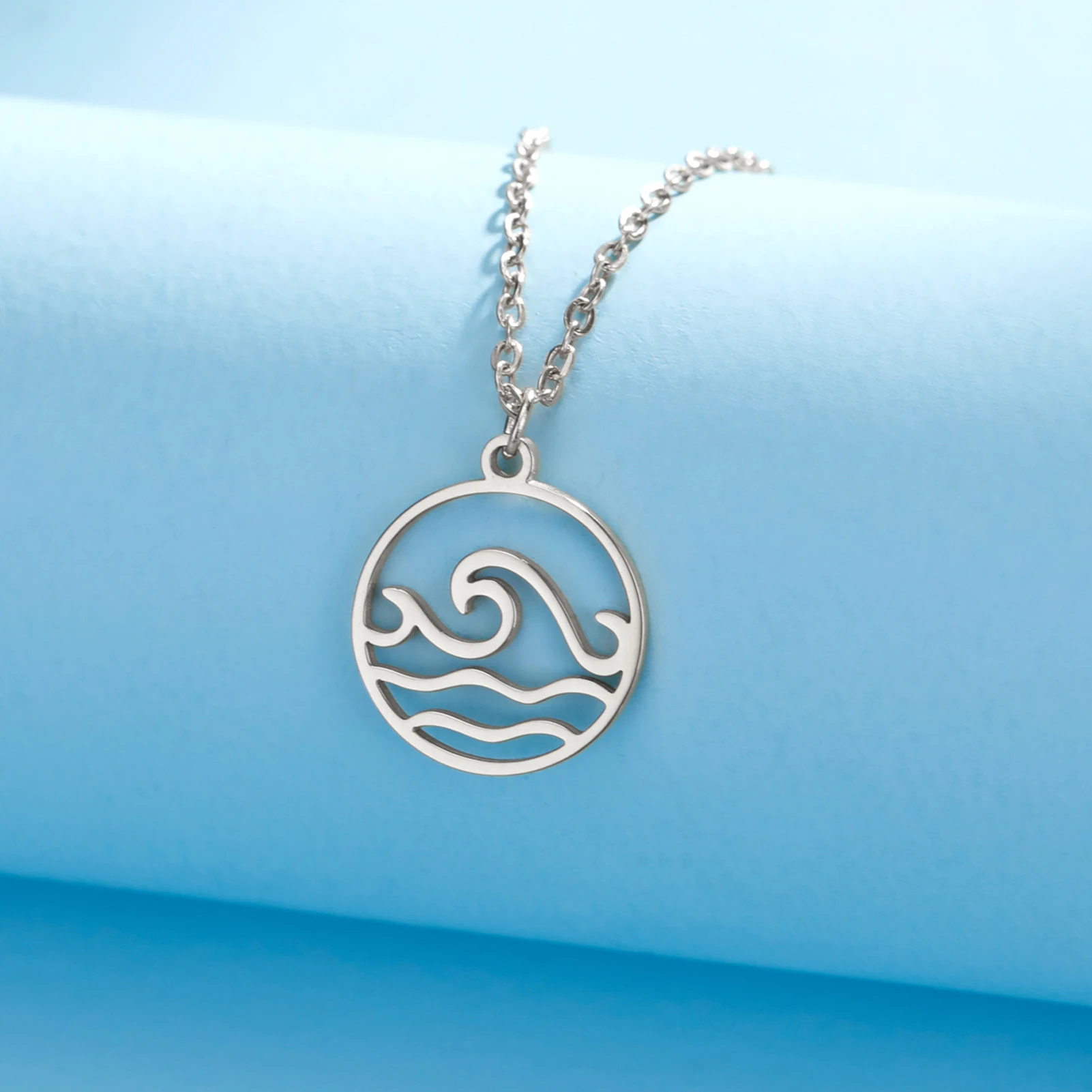 COOLTIME Collier pendentif vague de mer en acier inoxydable, tour d...