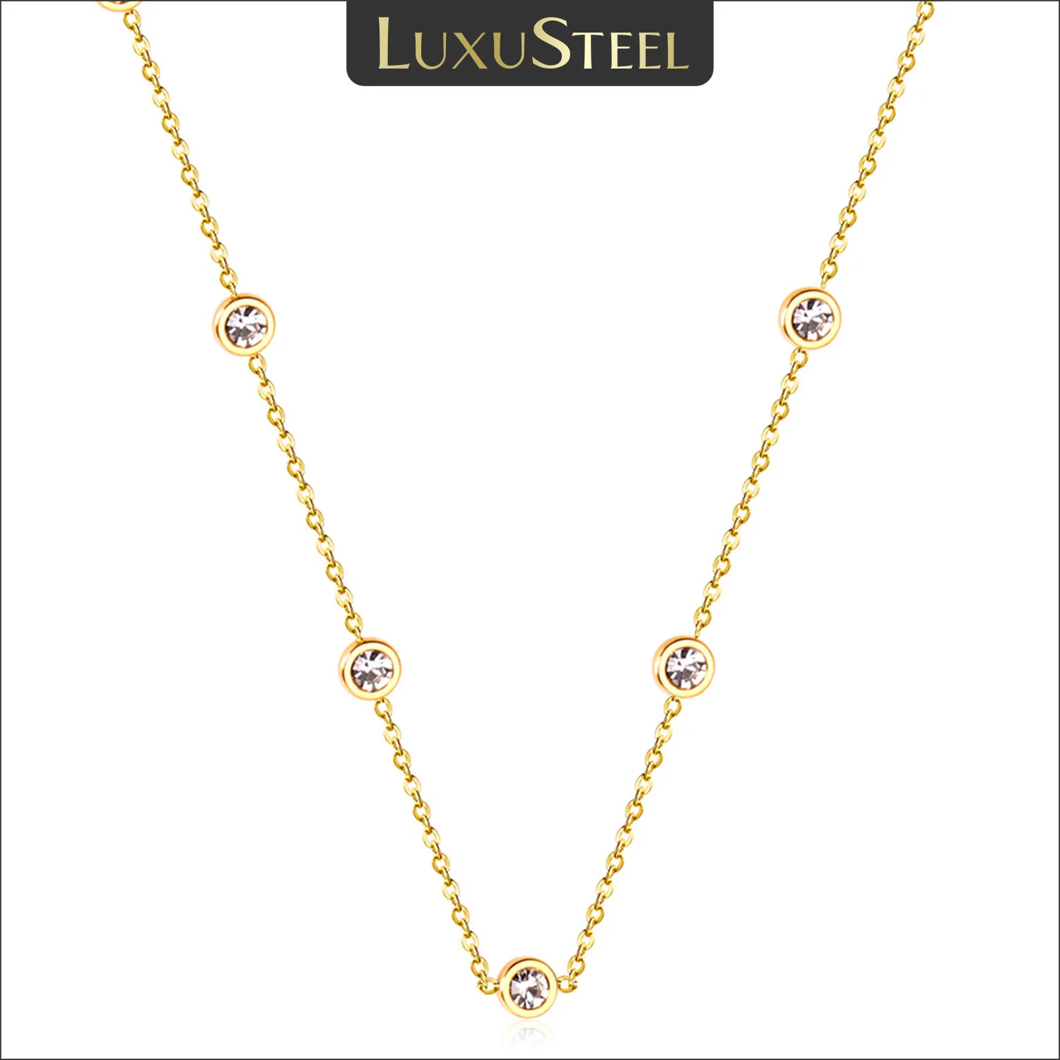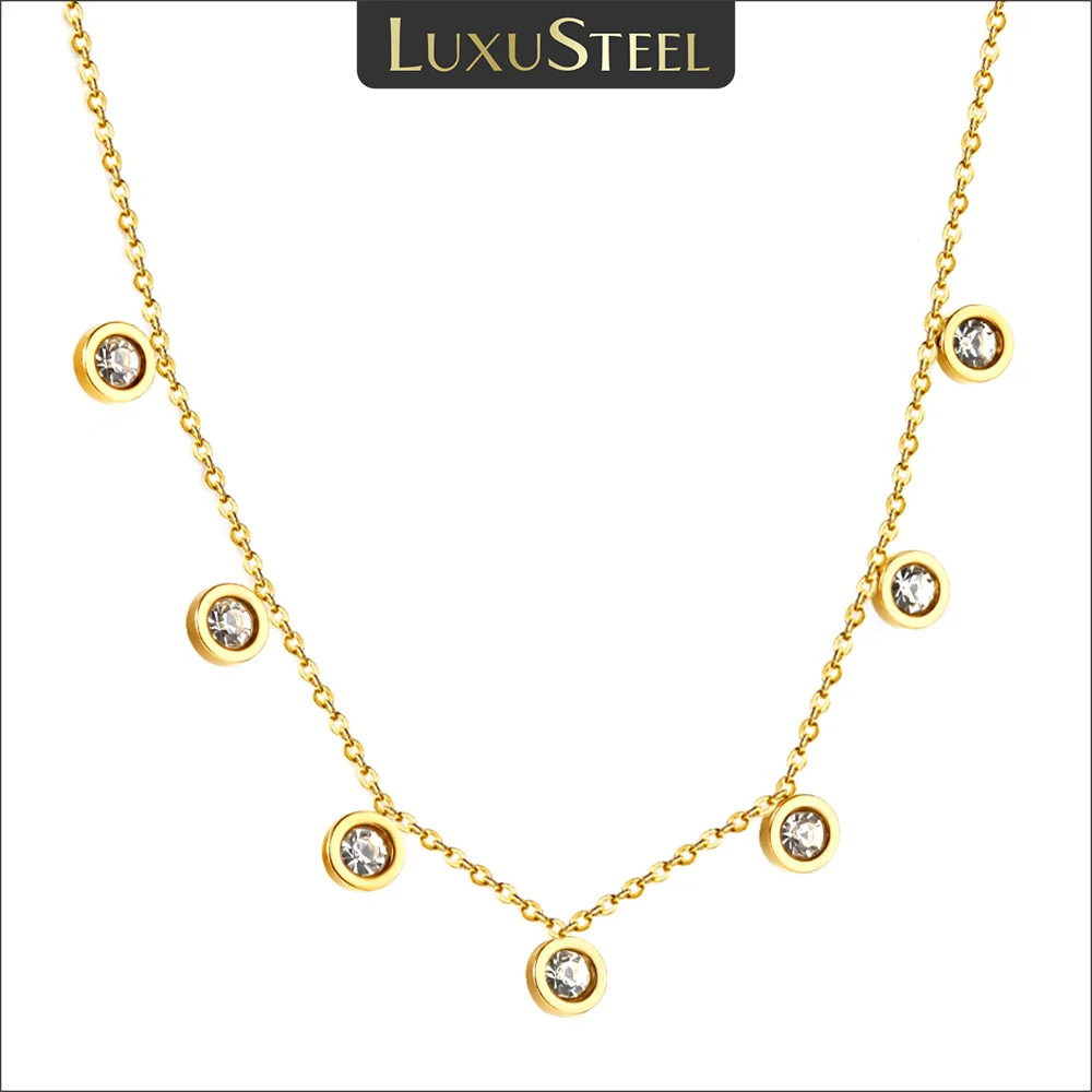 Collier Chic de luxe avec pendentif rond en cristal et Zircon pour femmes, 7 pierres, en acier inoxy...