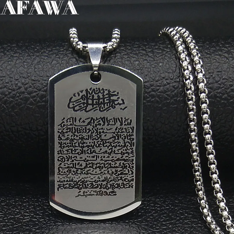 Islam Religieux Musulman Allah Tag Collier En Acier Inoxydable Hommes Argent Document Pendentif raq ...