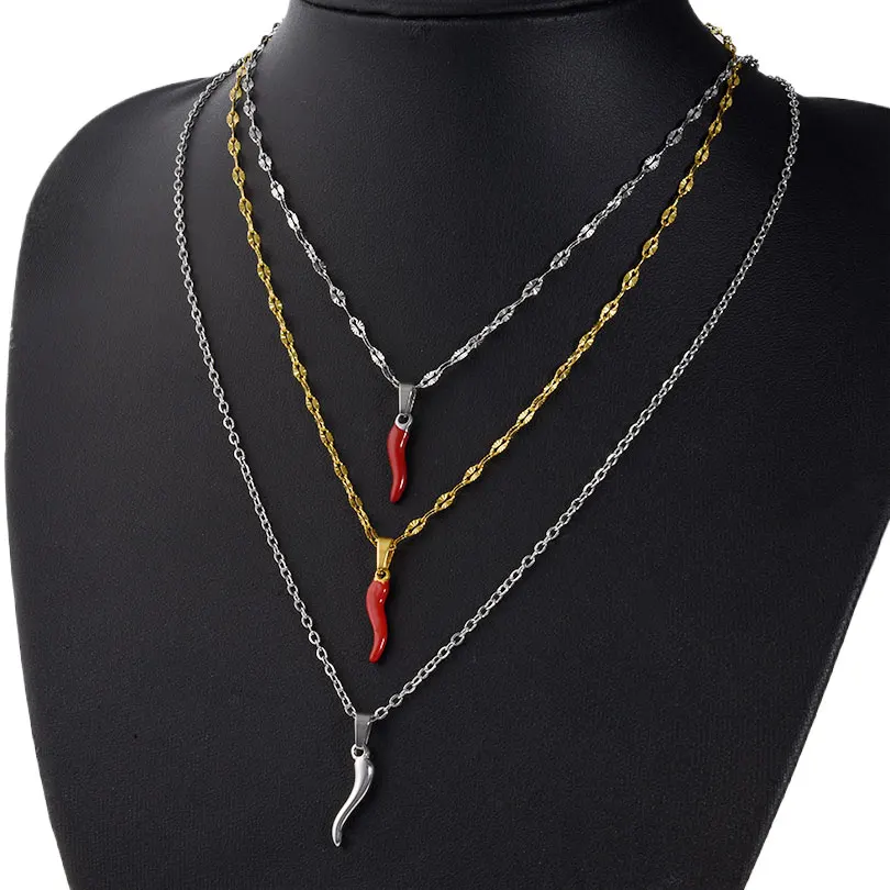 1 pièce en acier inoxydable Vintage corne porte-bonheur Cornicello poivre chaud pendentif col...