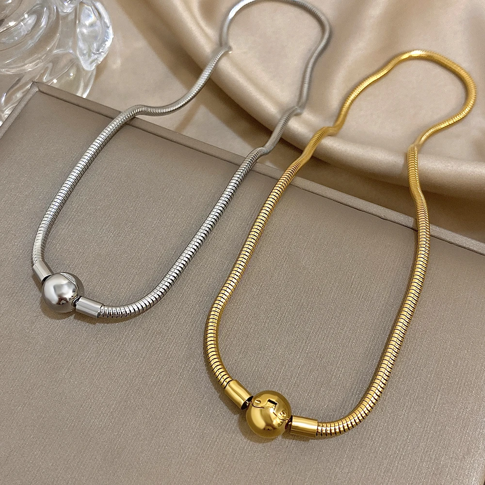 Simple Snake Bone Chain Round Bead Buckle Necklace Fashion Gold Silver Color Stainless Steel Collar ...