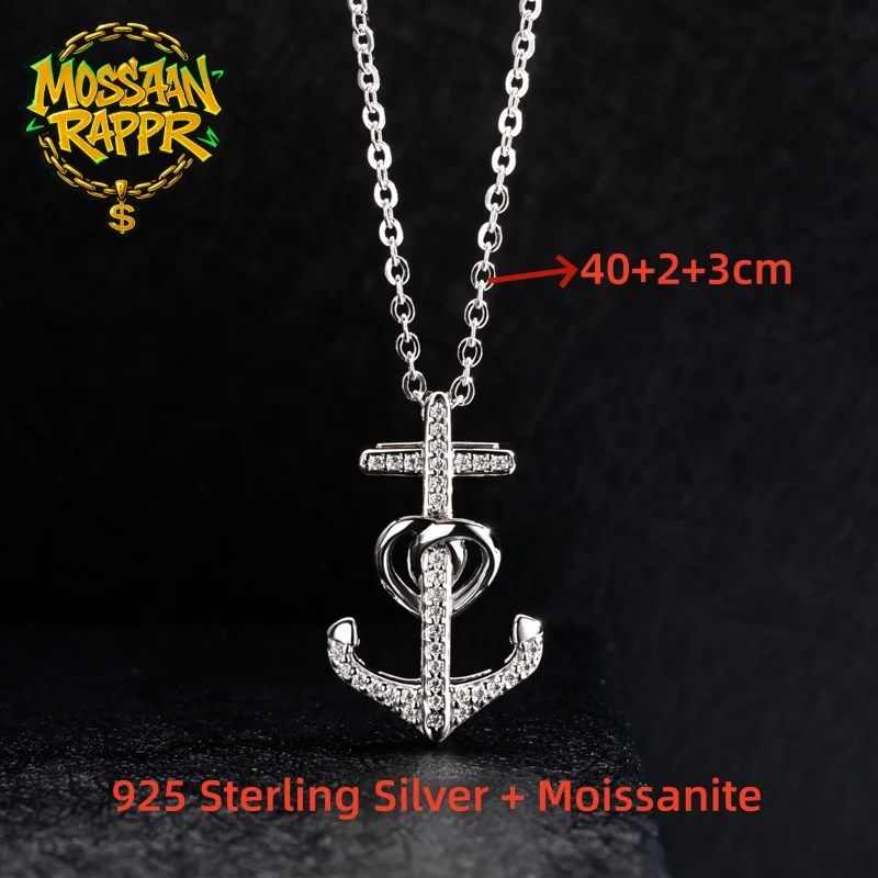 MossanRappr D Color Moissanite Anchor Pendant 925 Sterling Silver Hip Hop Necklace Fine Jewelry Gift...
