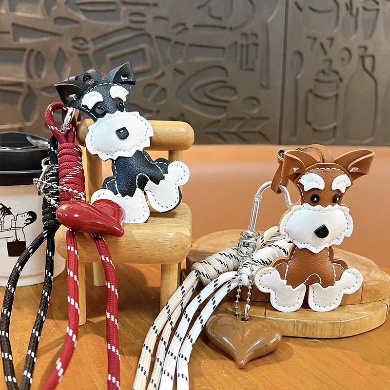 Nouveau mignon chiot forme coeur pendentif clé pendentif haut de gamme tissé corde pol...