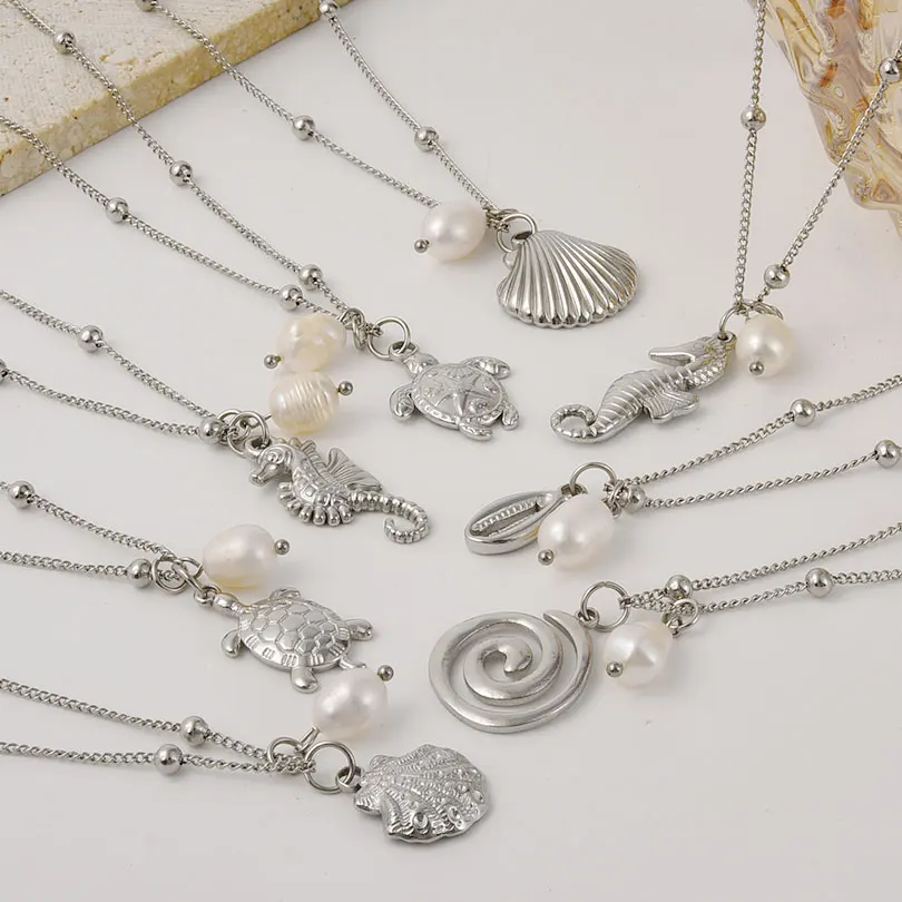 Collier de mer à la mode en acier inoxydable, pendentif tortue hippocampe, chaîne de pe...