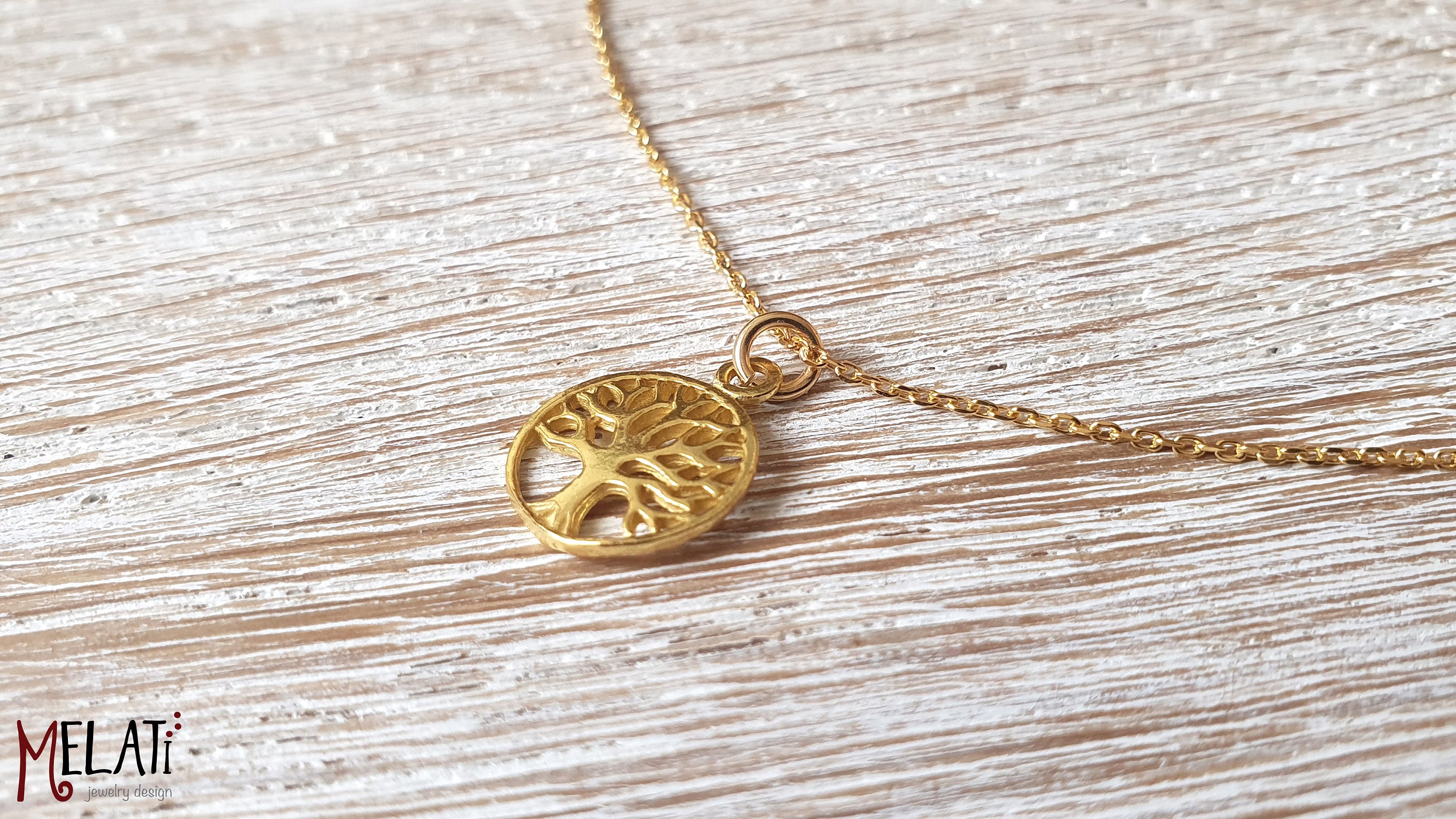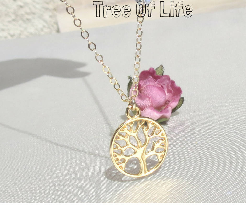 Collier arbre de vie, collier en or 14 ct, petit pendentif arbre de...