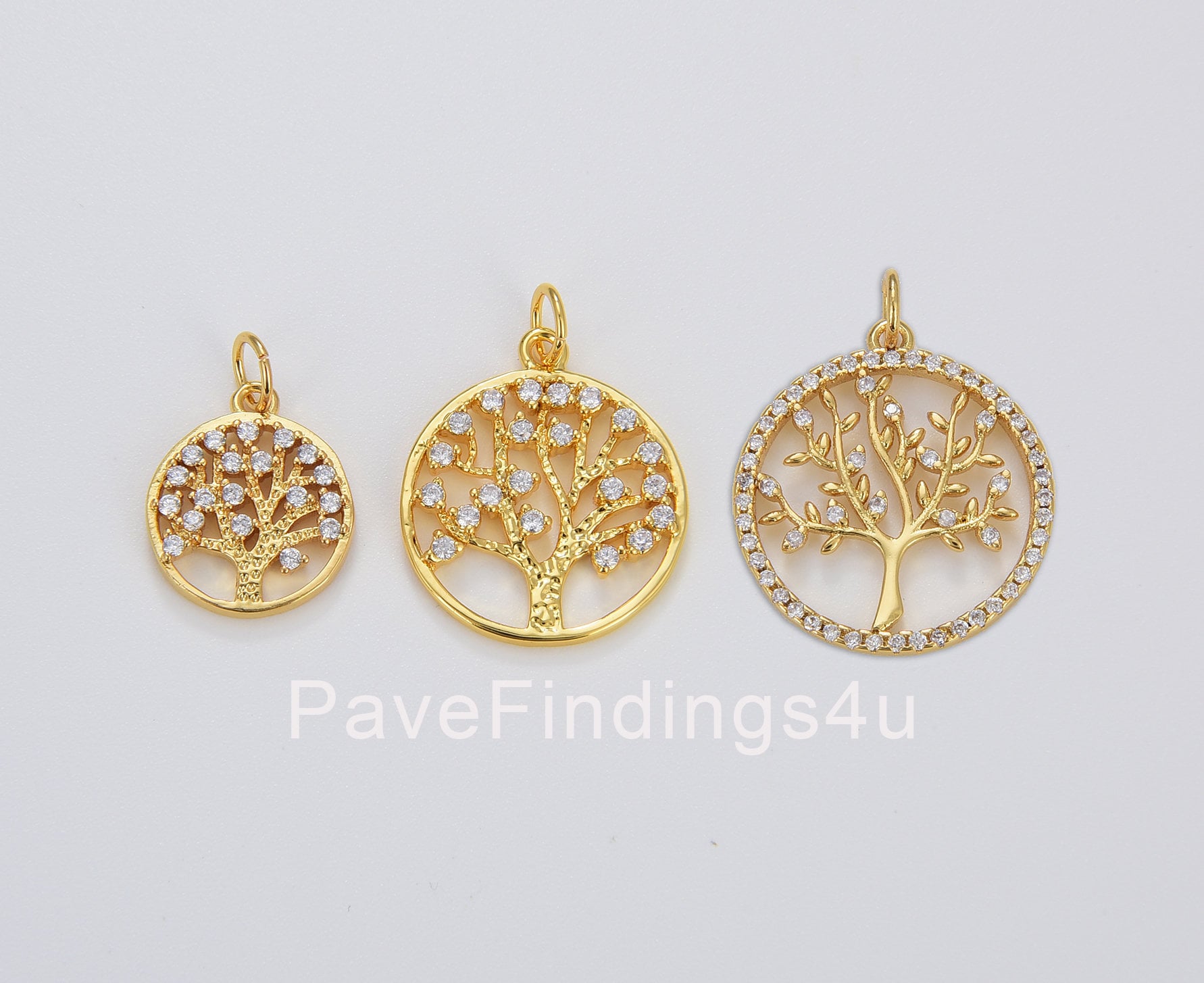 Petit/moyen pendentif arbre de vie rempli d'or 18 carats, pendentif arbre de vie cz micro-pavé...