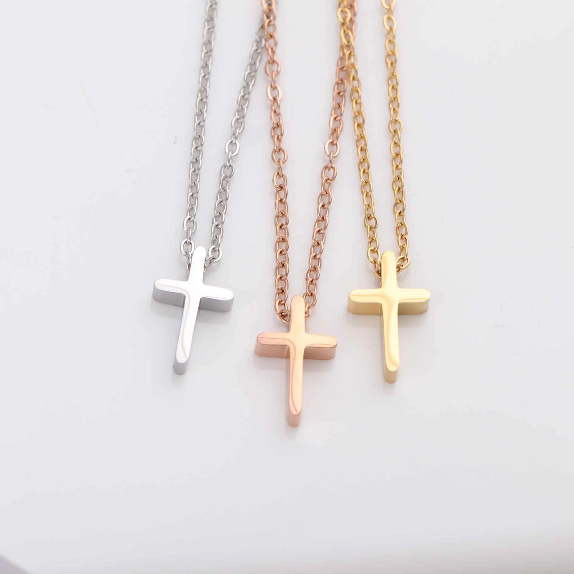 Collier croix en acier inoxydable poli miroir, Mini petits pendentifs croix, cadeau pour fille, coll...
