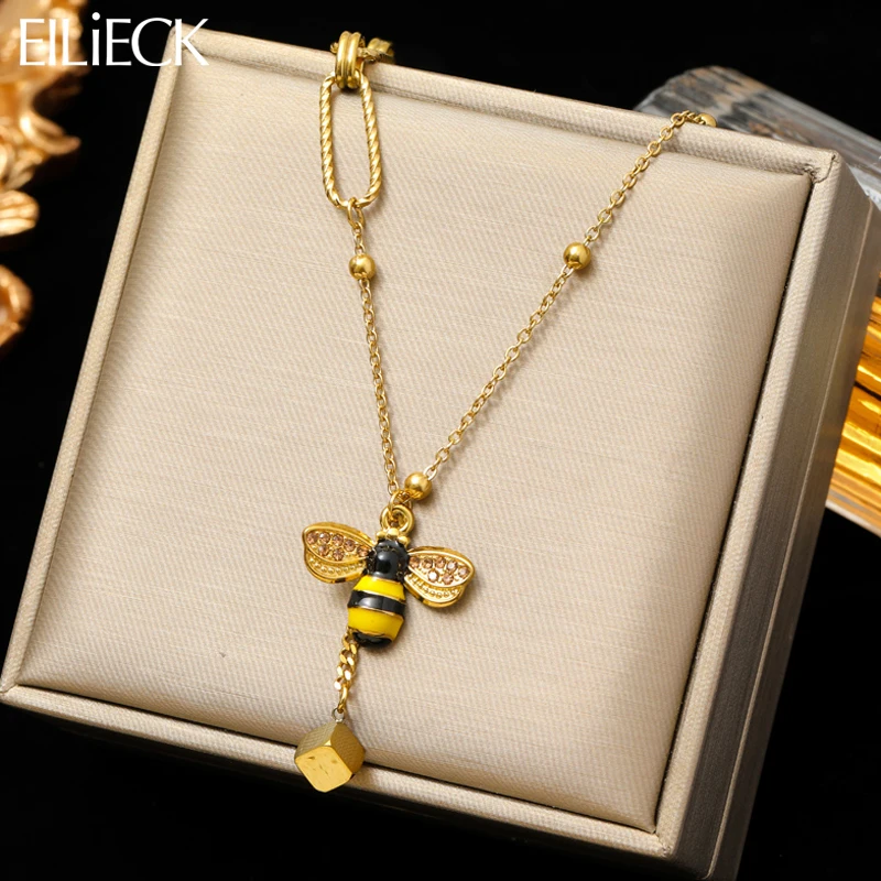 EILIECK 316L acier inoxydable mignon petite abeille pendentif collier pour femmes fille mode cr&eacu...