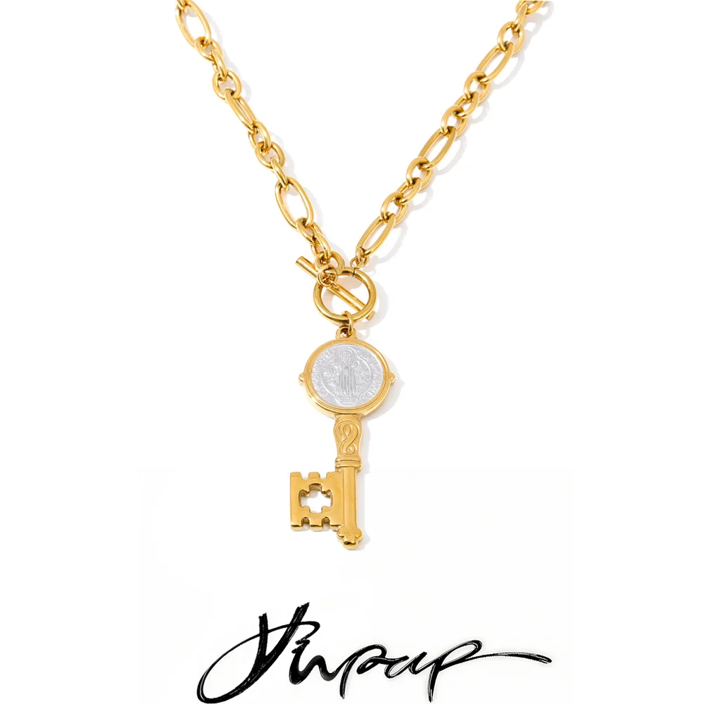 Yhpup élégant Unique en acier inoxydable Double face serrure pendentif collier 18K PVD...