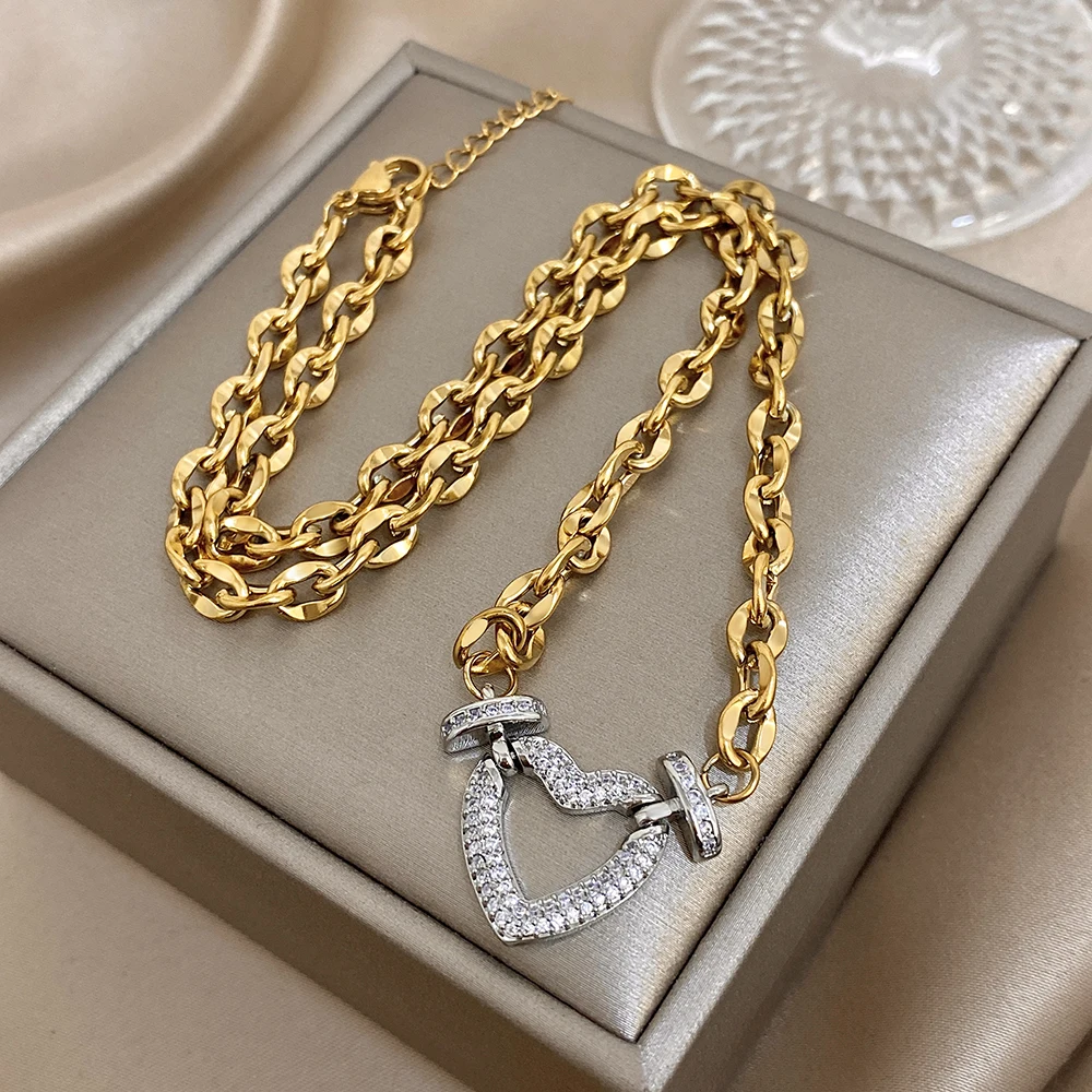 Collier avec pendentif à breloques en acier inoxydable, serrure en Zircon complet et cœ...