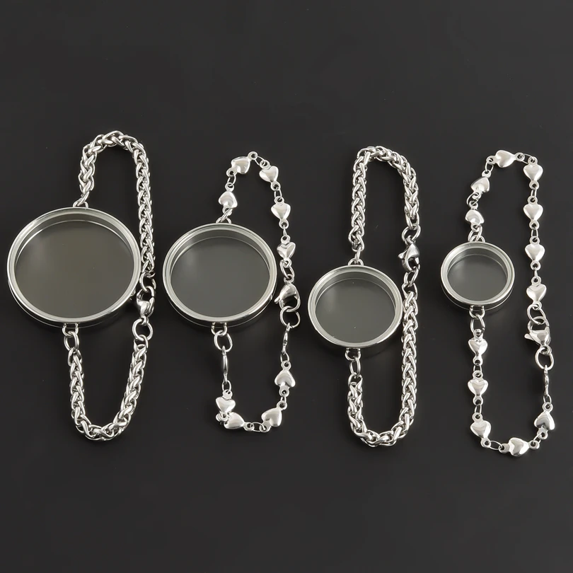 1Pc en acier inoxydable ouvrable rond Reliquaire Photo médaillon pendentif Bracelet bijoux ve...