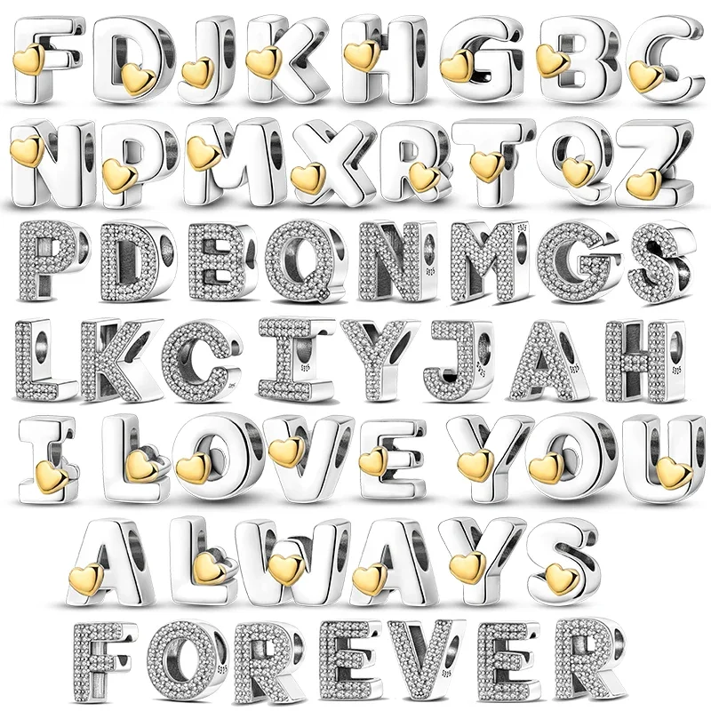 925 Sterling Silver Fit 925 Bracelet Original DIY A-Z Alphabet Charms Perle CZ Zunderes sur LOVE Let...