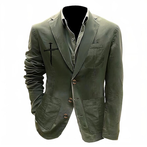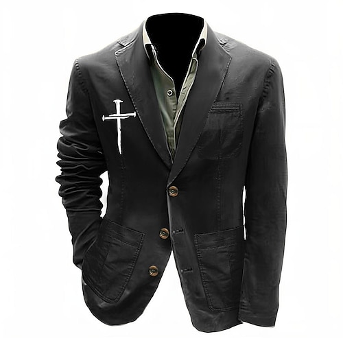 Homme Imprimé Croix Blazer Veste de costume en coton Manteau...