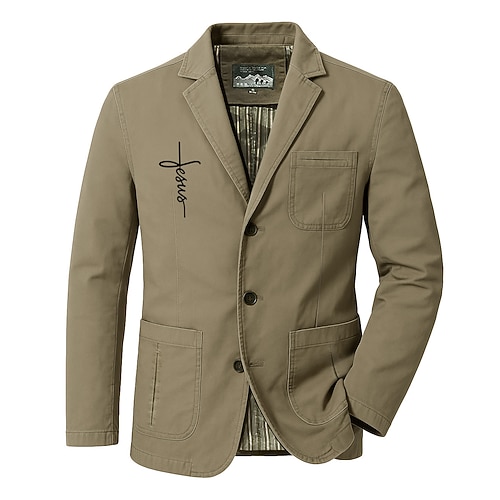 Homme Imprimé Lettre Foi Blazer Veste de costume en coton Ma...