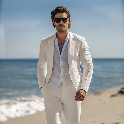 Pour des hommes Costumes en lin Mariage à la plage Blanche B...