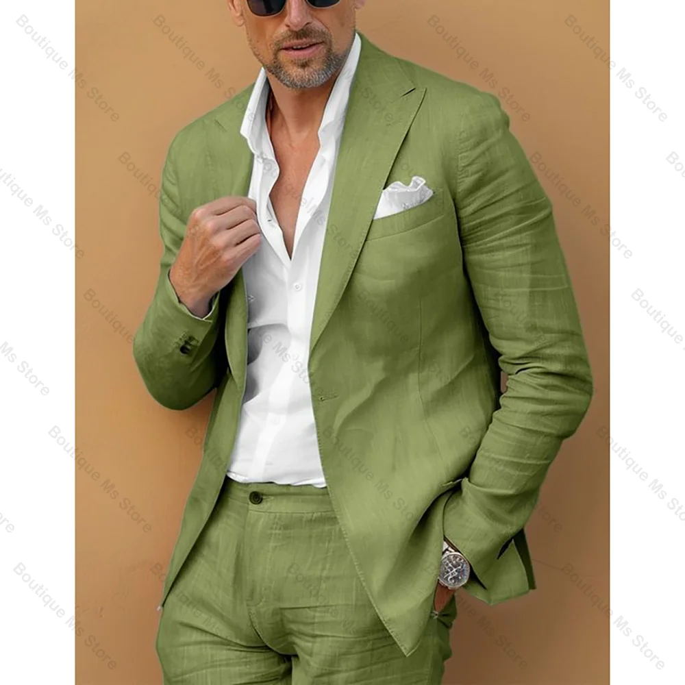 Costume en lin vert pour hommes, simple boutonnage, revers à pointe, Costume formel dé...