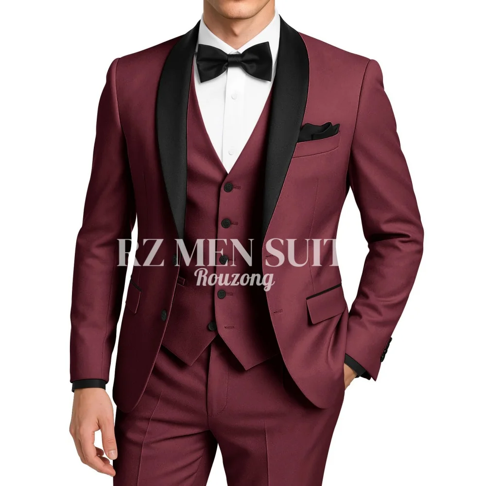 Costume de smoking 3 pièces pour homme, coupe ajustée, deux boutons, pour mariage, bal...