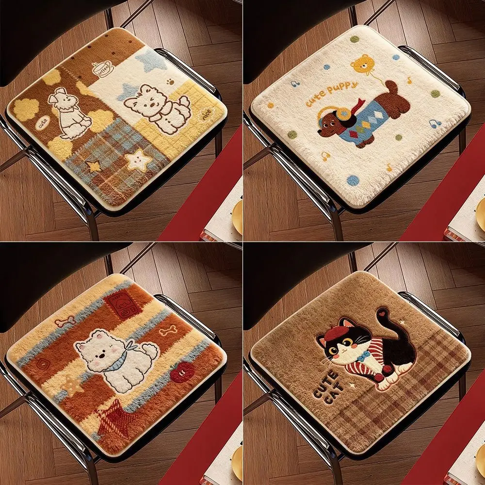 Coussin de chaise de dessin animé 40x40cm, imitation cachemire, antidérapant, coussin ...