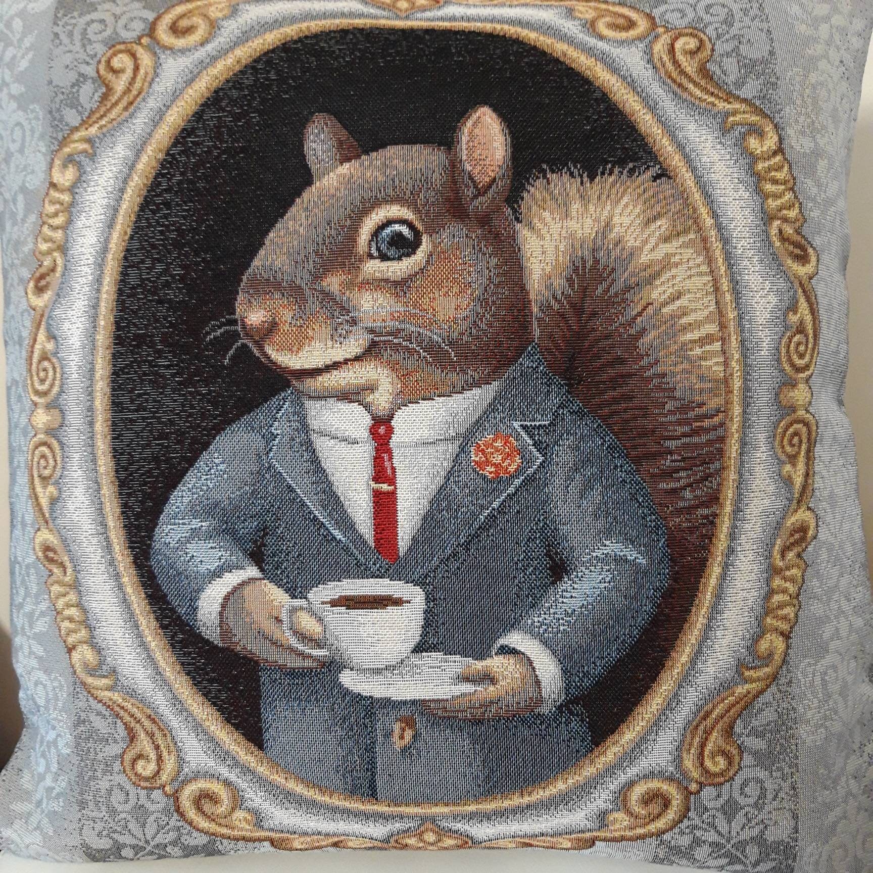 Superbe housse de coussin, tapisserie de belle qualité. Le dos est de couleur grise. La houss...