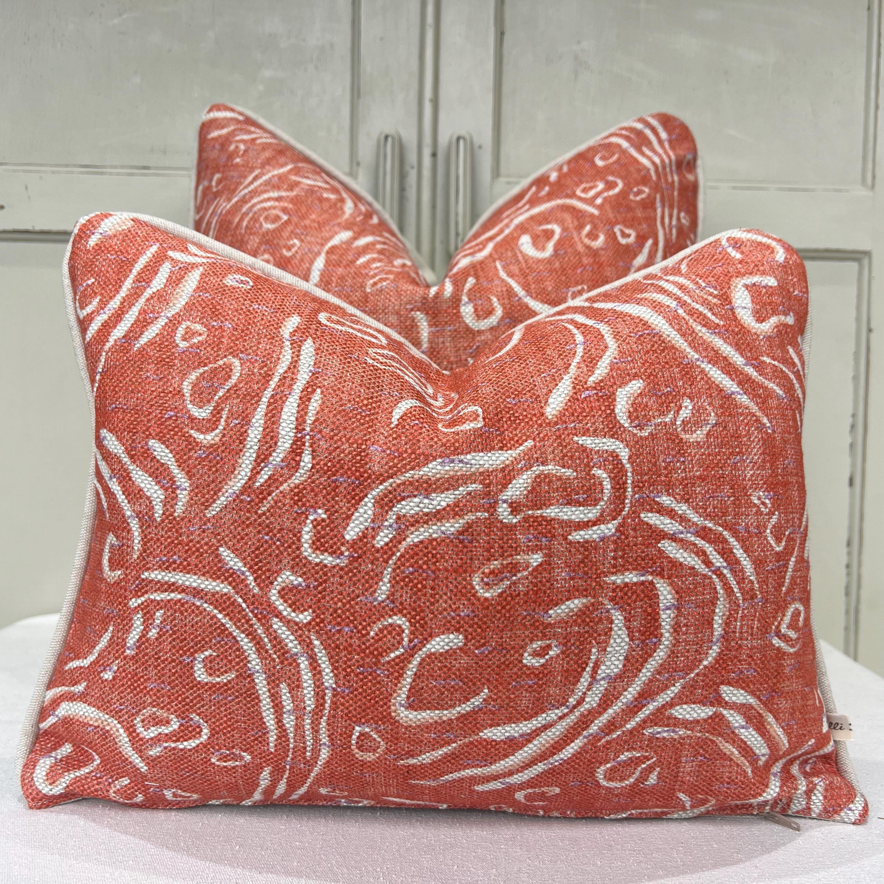 Ces housses de coussin sont fabriquées en tissu Fermoie Pebble dans le coloris orange br&ucir...