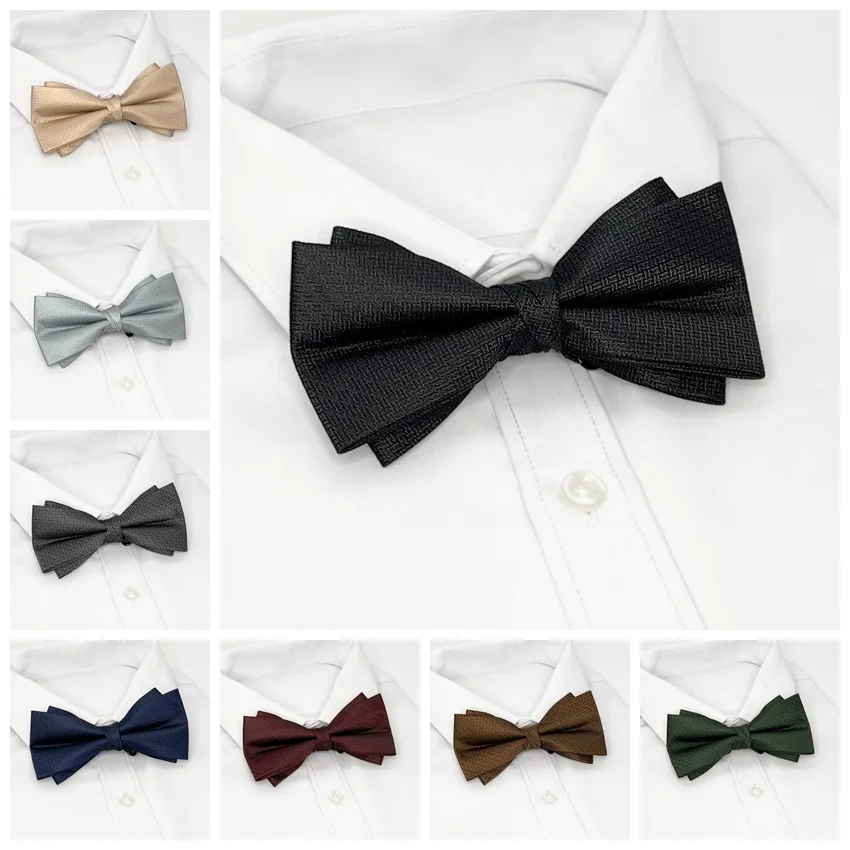 2024 couleur unie marron vert noeud papillon pour hommes Style britannique Double couche nœud ...