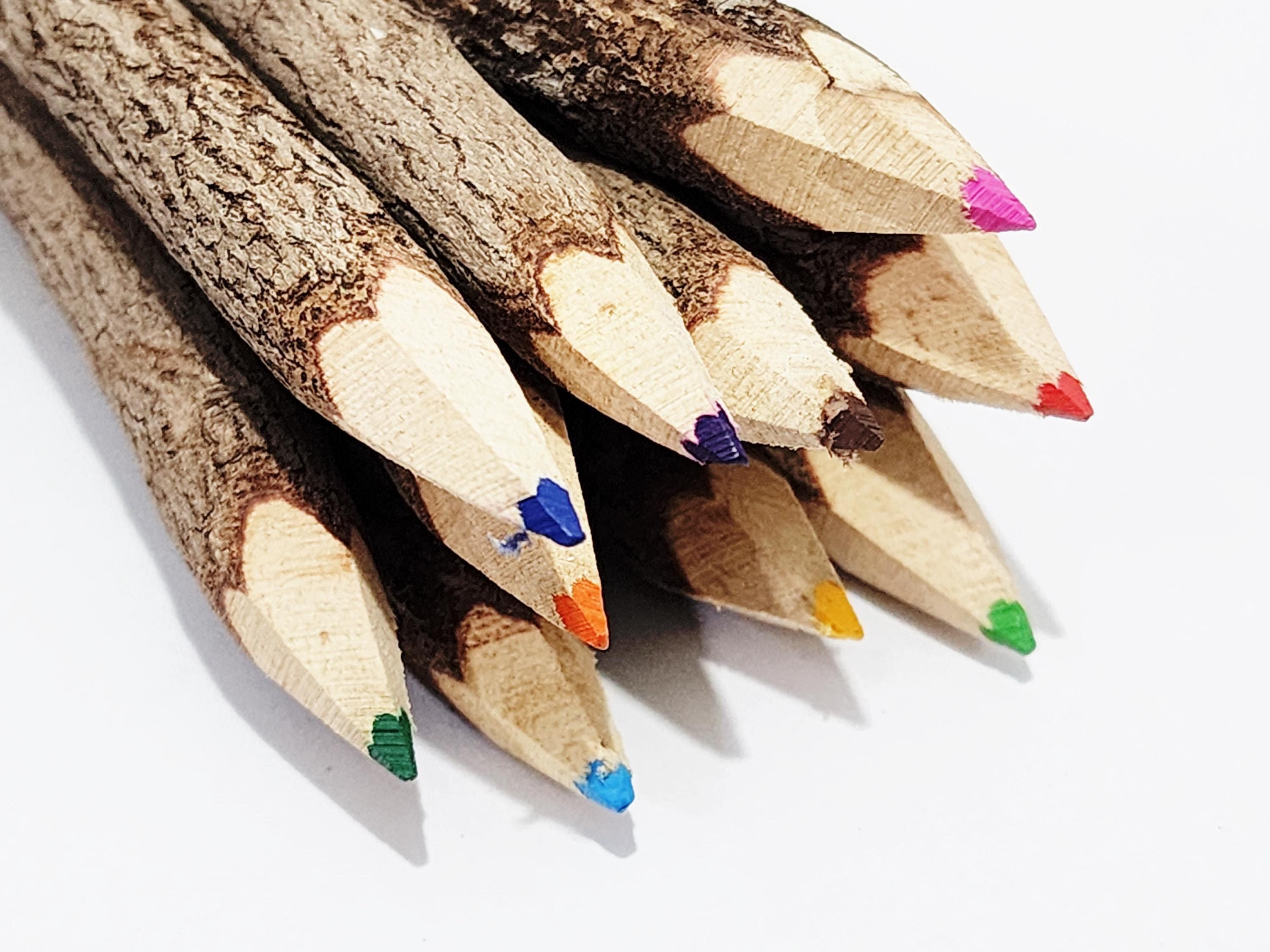 Lot de 10 crayons de couleur brindilles en bois d'écorce, pa...