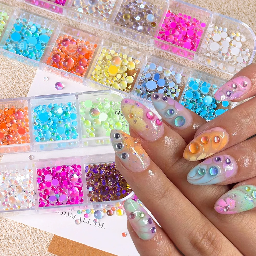 1 boîte Macaron bulle 3D verre cristal Nail Art breloques taille mixte brillant sirène ...