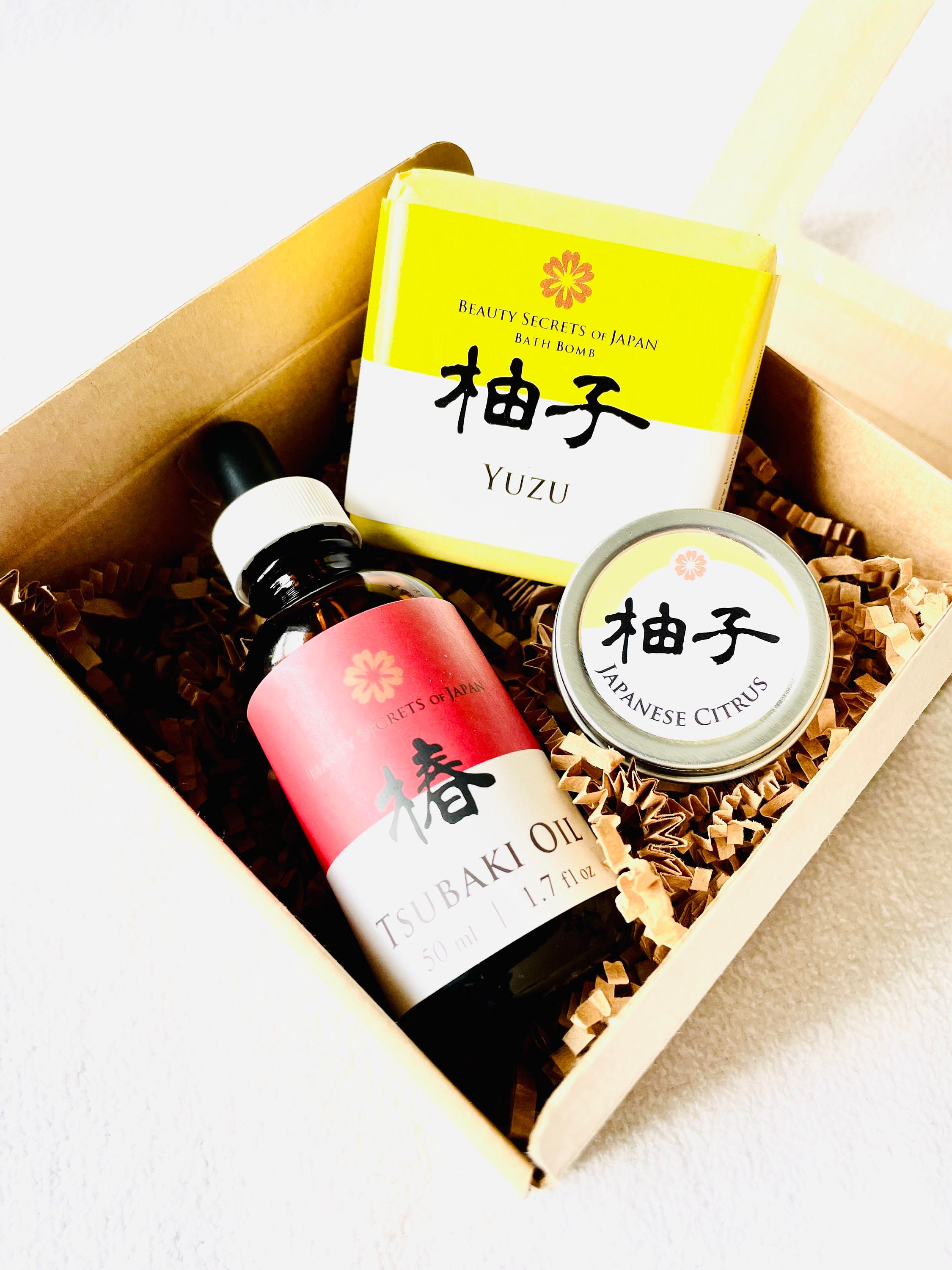 Coffret Yuzu japonais : huile de tsubaki, bombe de bain, baume &agr...