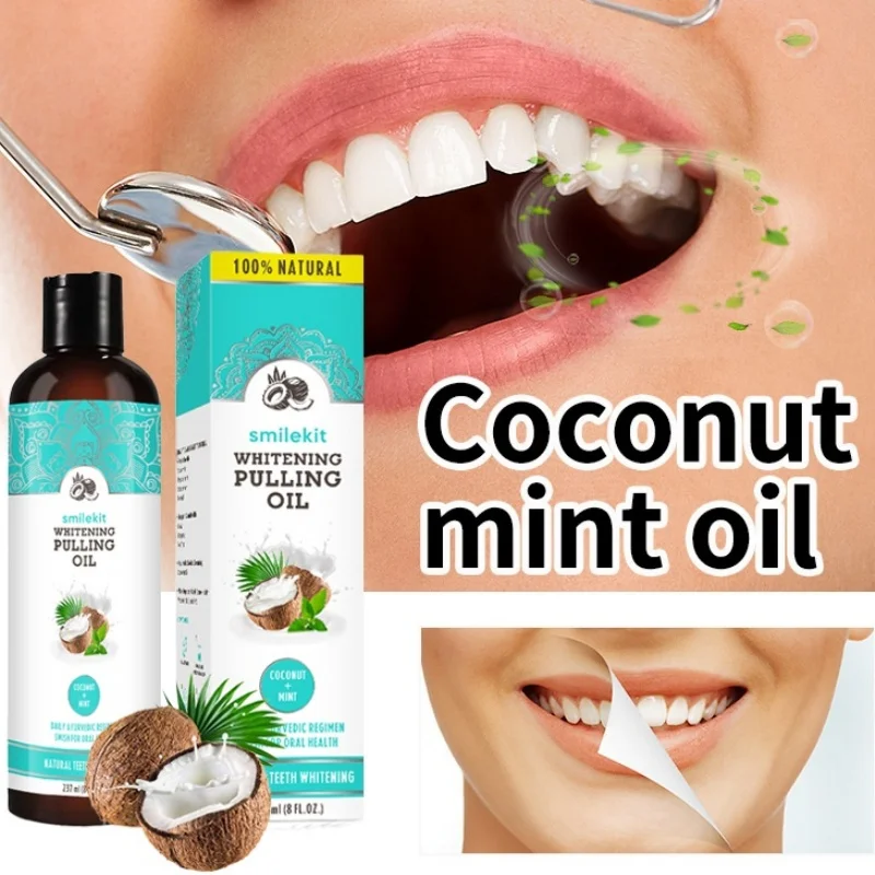 Huile de traction de menthe de noix de coco naturelle, bain de bouche frais, hygiène buccale,...