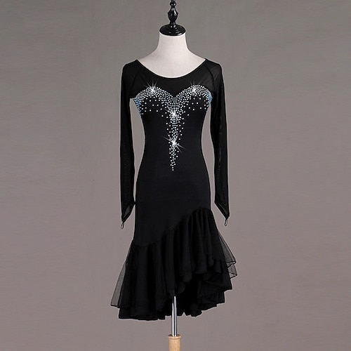 Robe de danse latine noire à strass pour femme - robe de bal...