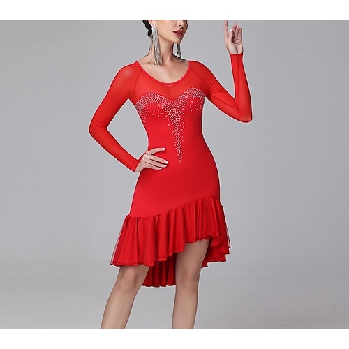 Catégorie:Danse Latine; Décoration:Couleur unie,Cristaux / Strass; Tissu:Spandex,Polye...