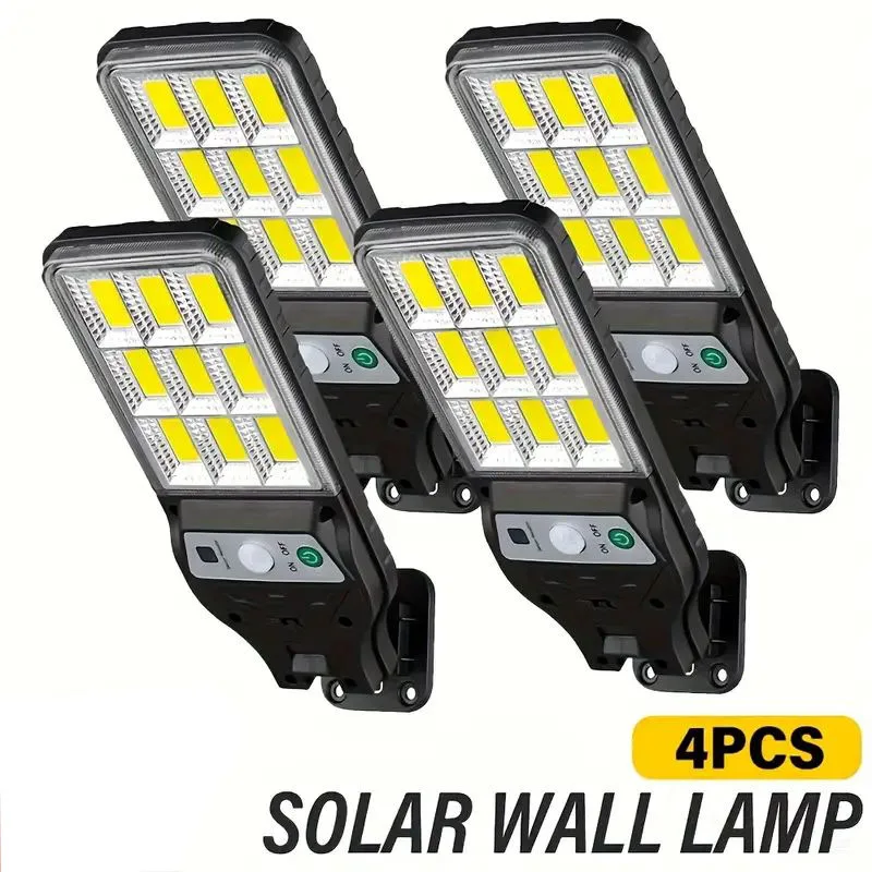 Applique murale solaire avec capteur de mouvement 108COB, 4 pièces, 3 Modes d'extérieu...