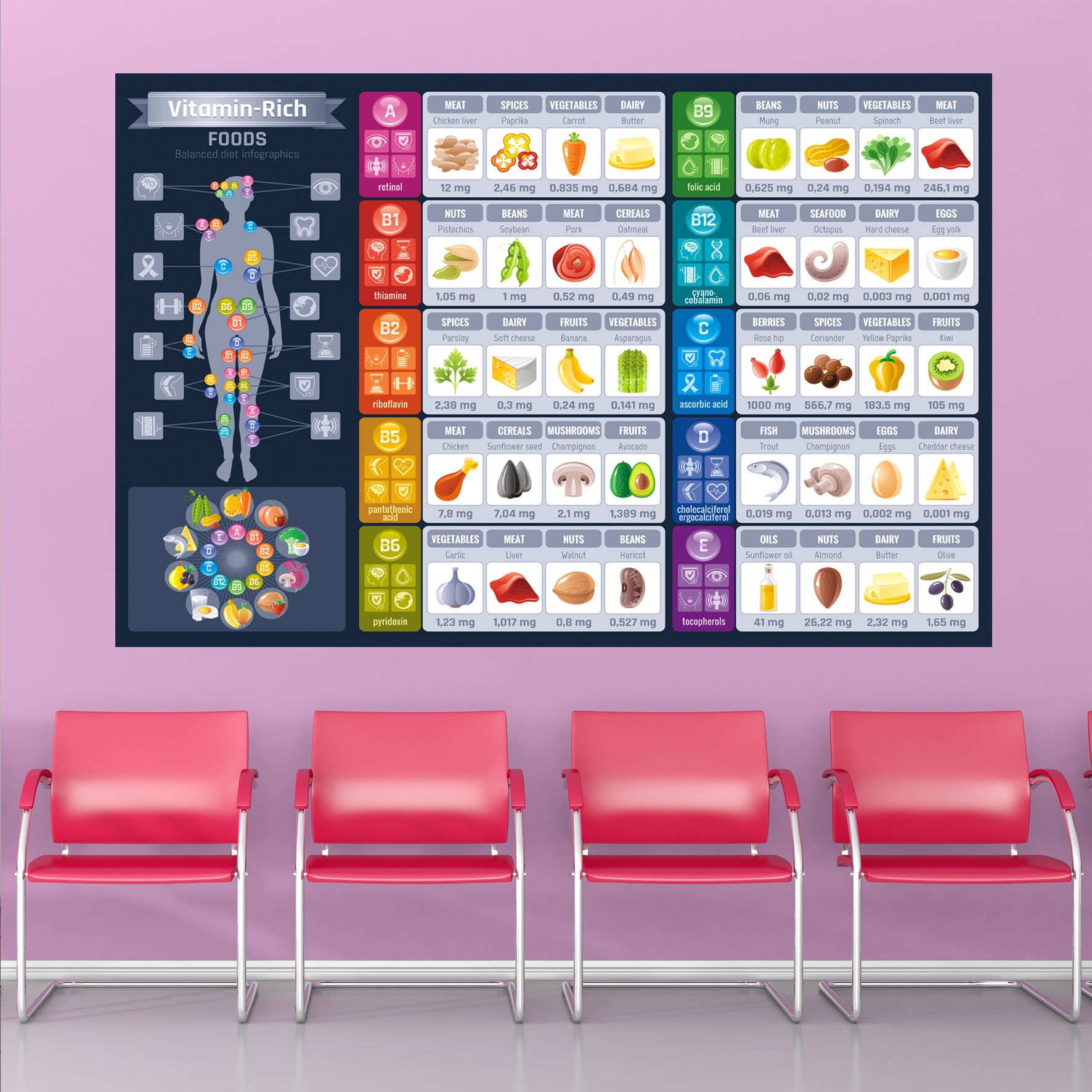 Tableau alimentaire riche en vitamines Autocollant mural Autocollan...