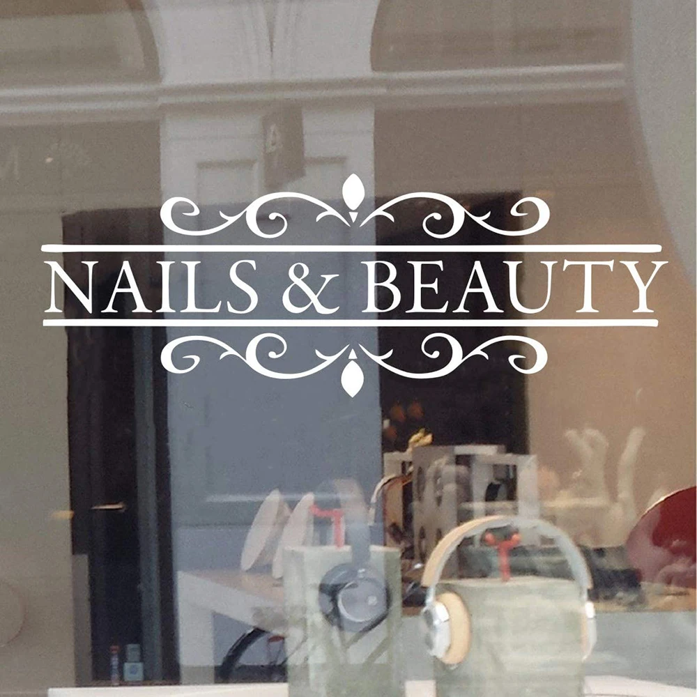 N64.& Beauty Hair Beauty Salon Wall Decal, Polish Bar Window St...