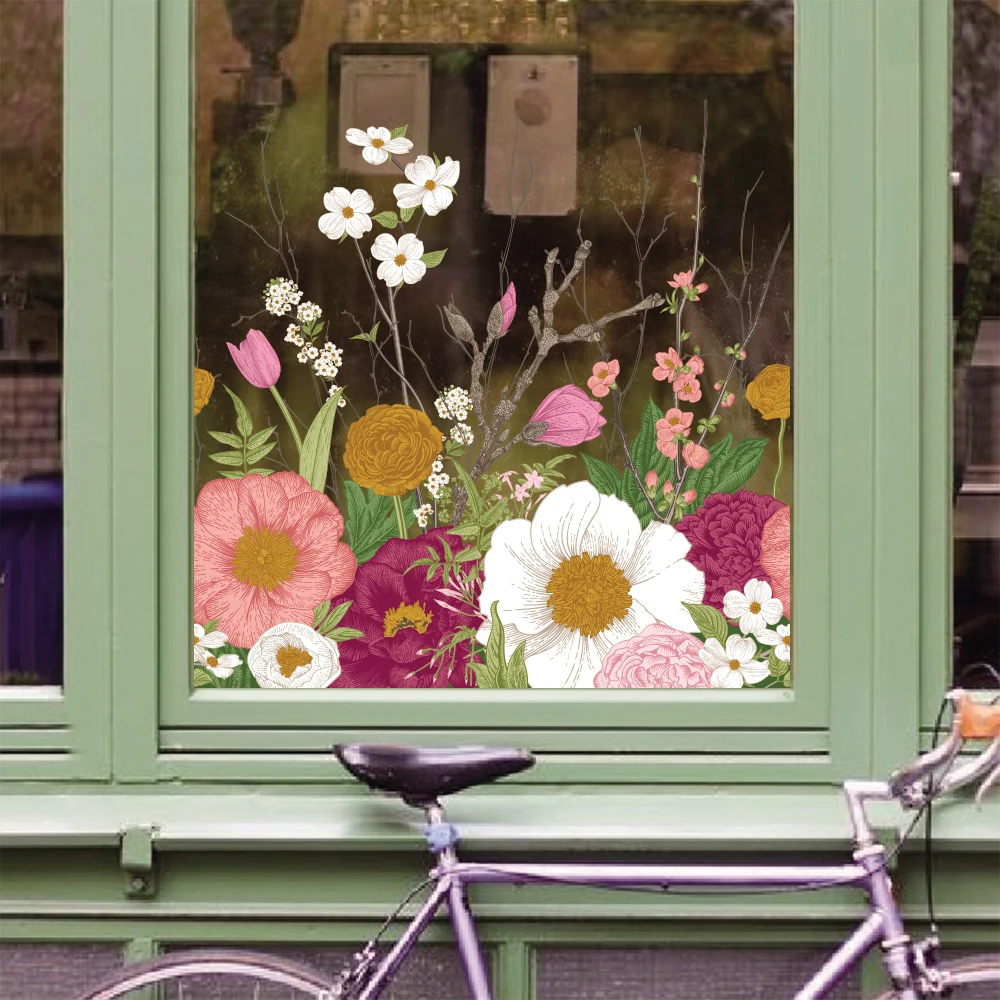 Double Visible NO Glue Window Leges Cling Stained Colorful Floral PerfecRéutilisable for Glas...