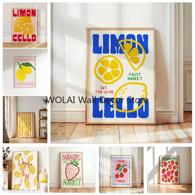 Affiche minimaliste en toile de citron La Dolce Vita, fruits de citron frais, Art mural pour salon m...