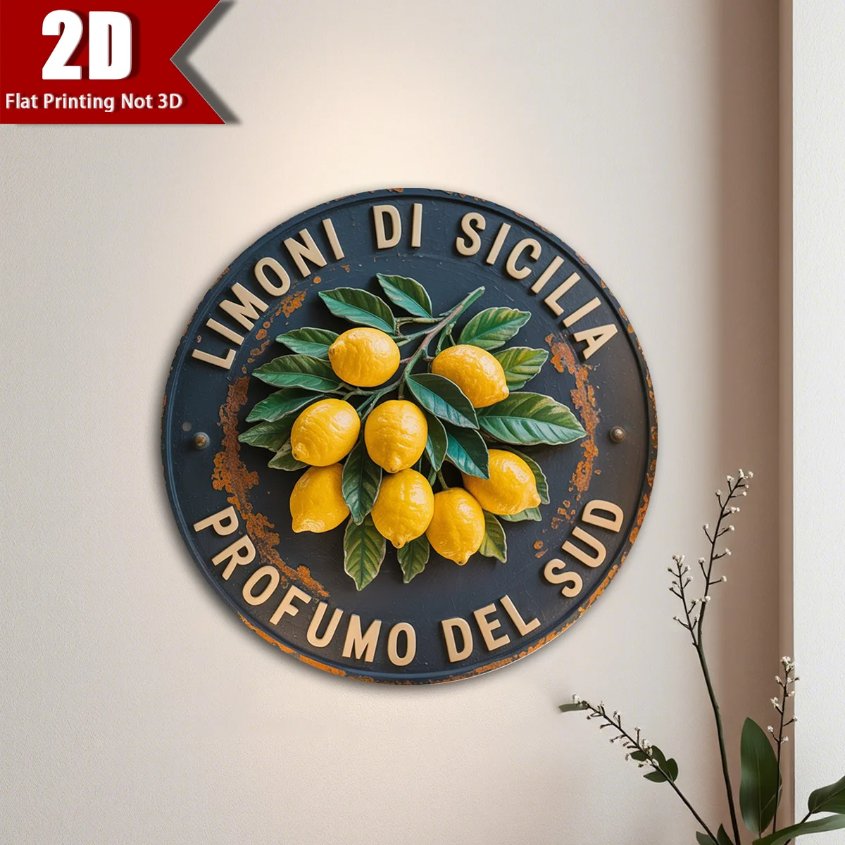 Plaque métallique vintage au citron sicilien - Art mural de style campagnard italien pour cui...
