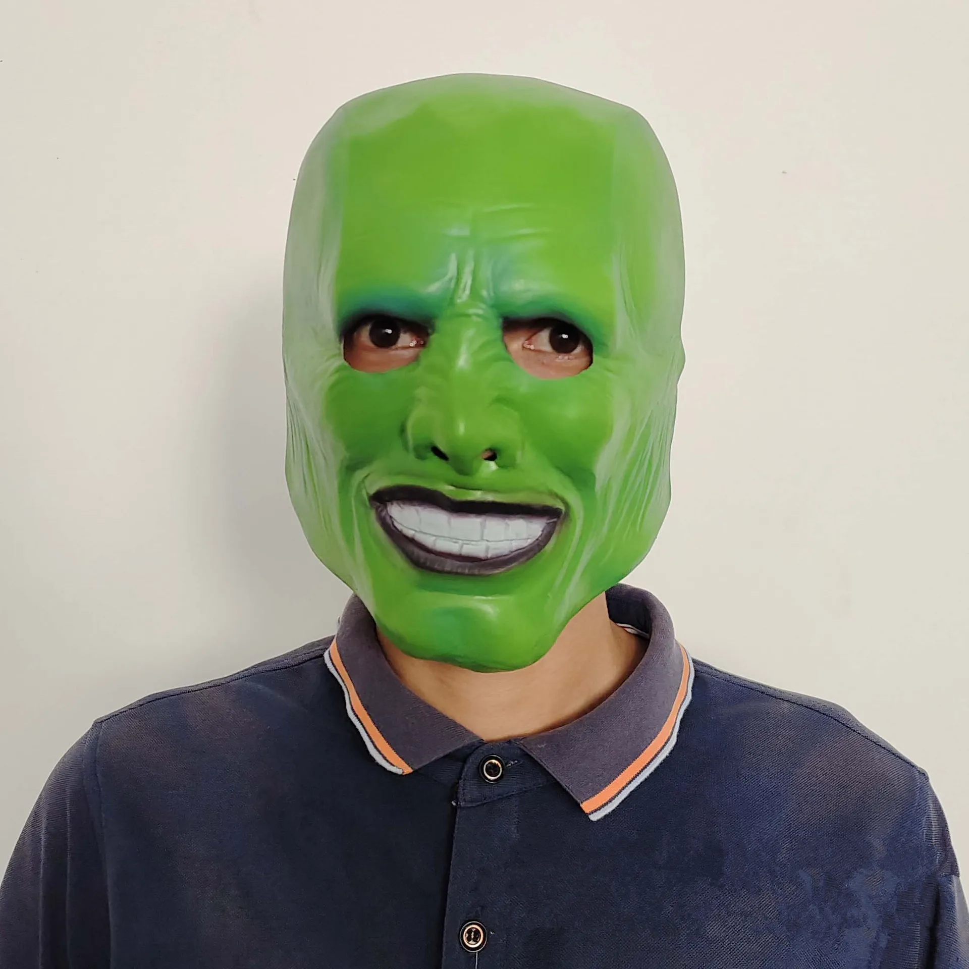 Masque de visage vert pour Halloween, inspiré des films de Jim Carrey, masque complet pour ad...