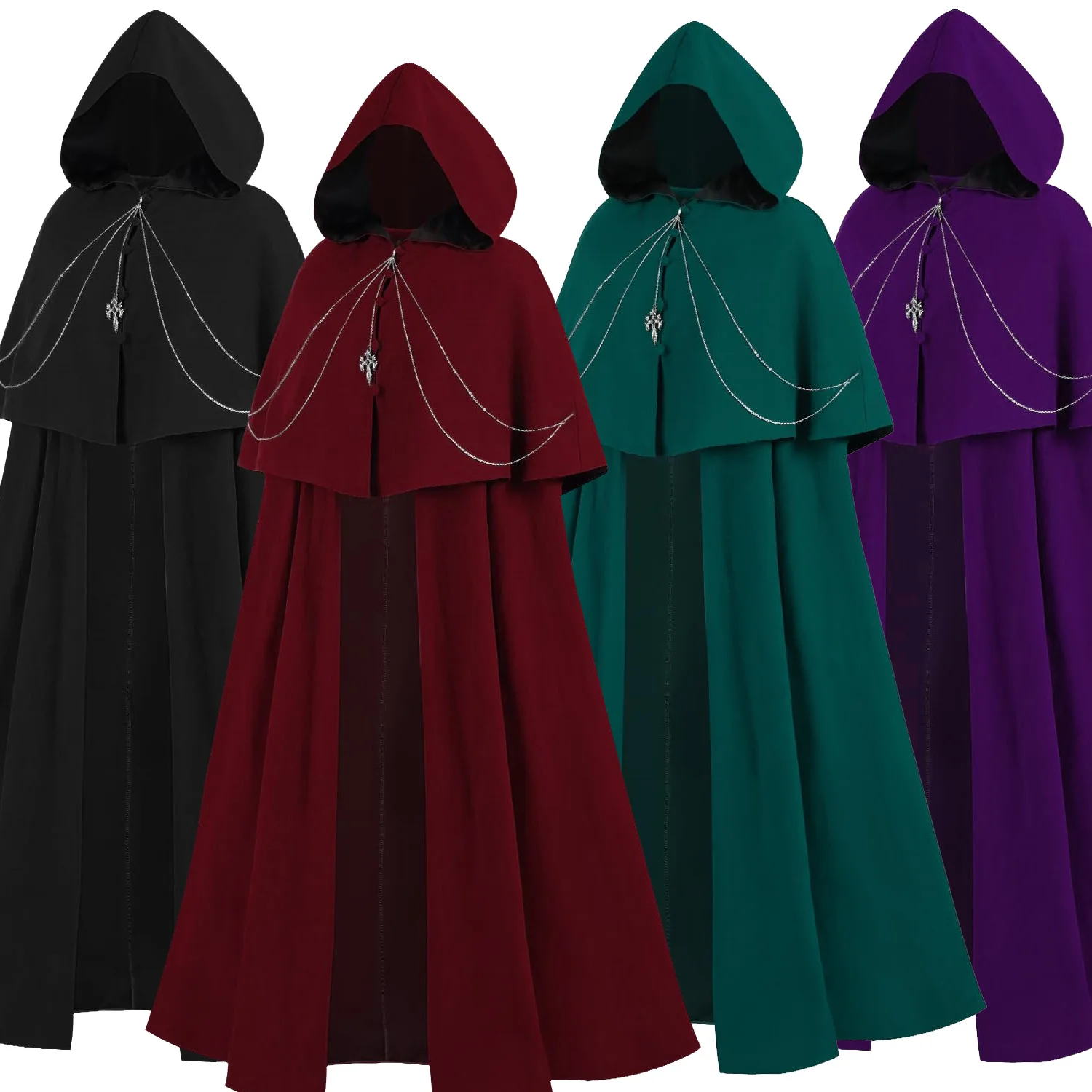 Costume de Cosplay d'halloween pour femmes, Steampunk rouge violet vert Cape chaîne en m&eacut...
