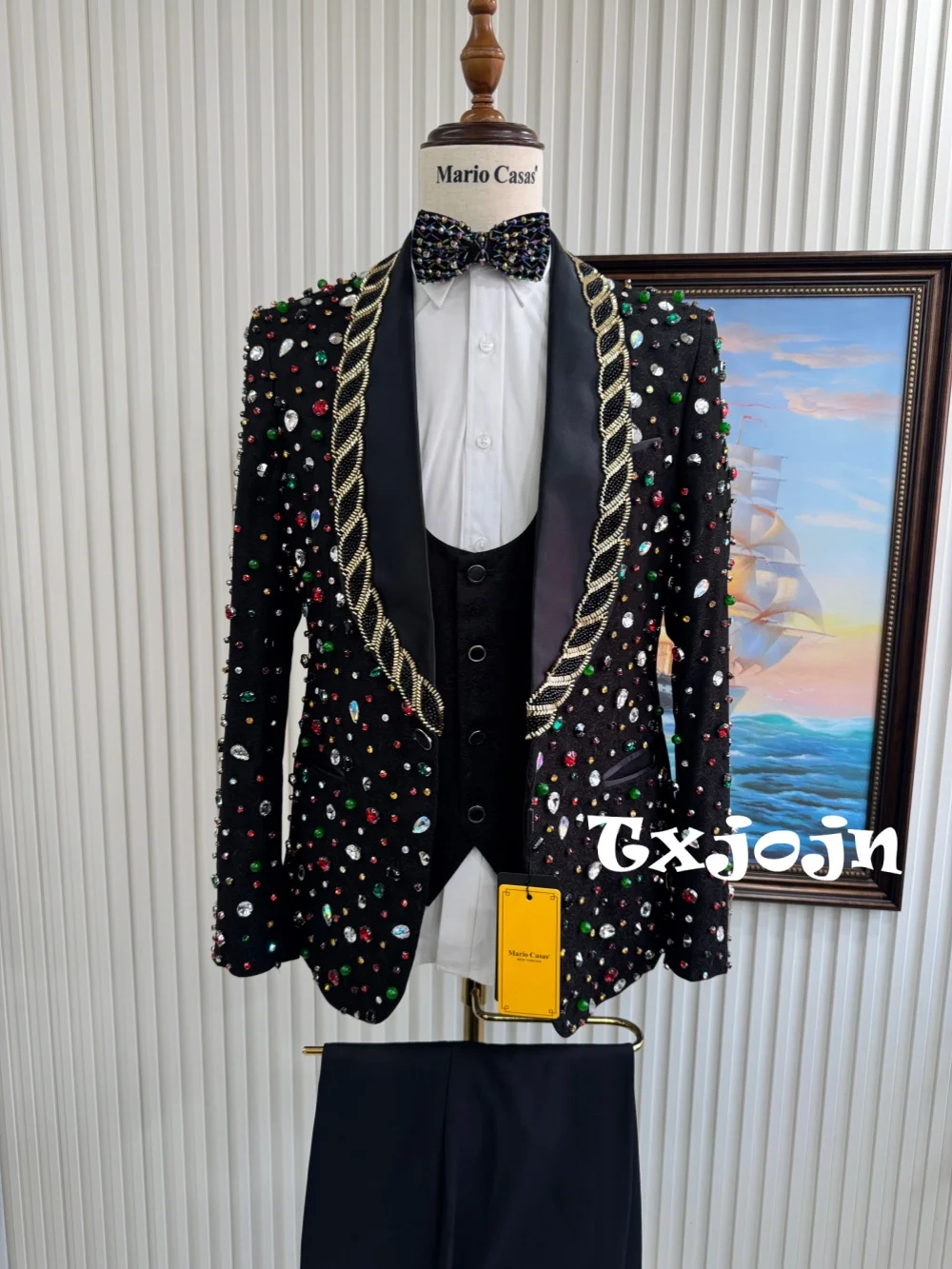 Costumes en cristal colorés pour hommes, 3 pièces, vêtements de danse, revers en...