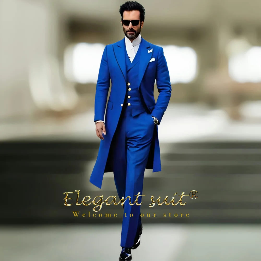 Costume long à revers de pistolet pour hommes, gilet et pantalon, costume 3 pièces, co...