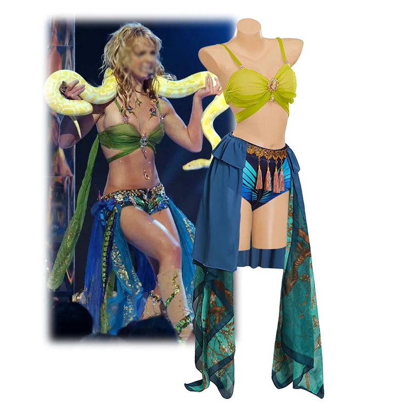 Britney esclave Costume bleu scène Performance robe danse avec serpent soutien-gorge Shorts j...