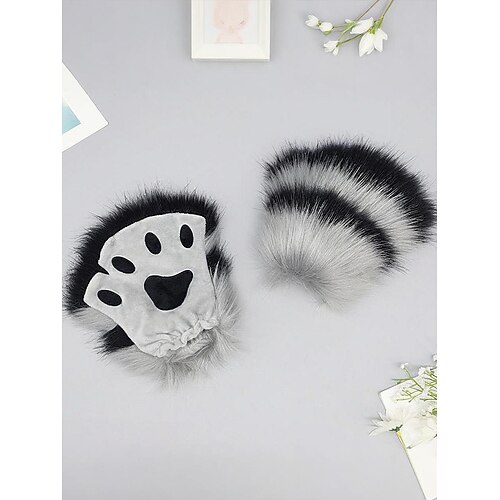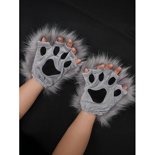 Gants d'Halloween en peluche pour femmes, motif pattes d'animaux &n...