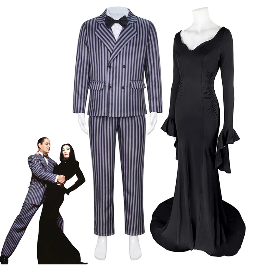 Costume de Cosplay Morticia Addams, robe gothique noire, robes Sexy, Costume pour hommes, uniforme, ...