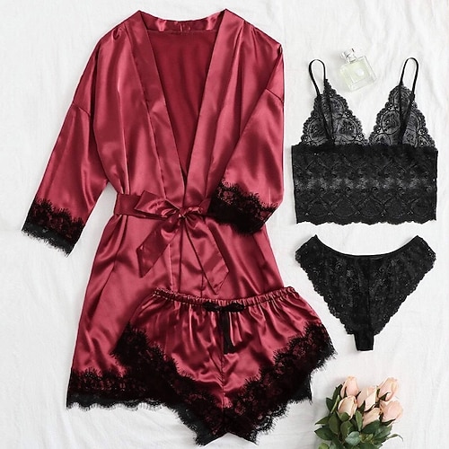 Délicat:Lavable; Pour:Femmes; Contenu:Haut,Shorts,Pyjamas,Peignoir; Types:Pyjama,Vêteme...