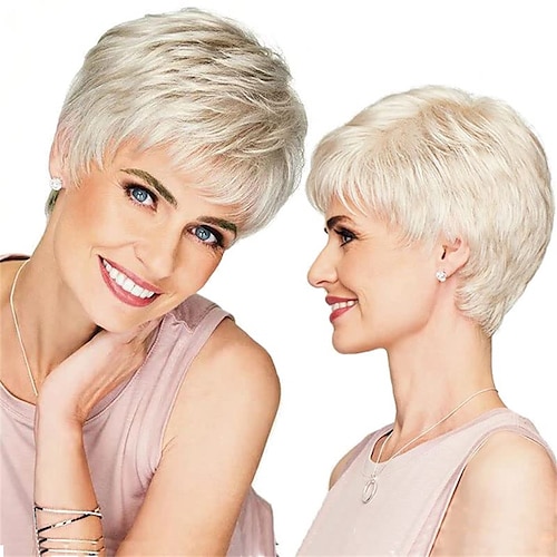 Perruque blanche courte pour femmes, perruque synthétique bl...